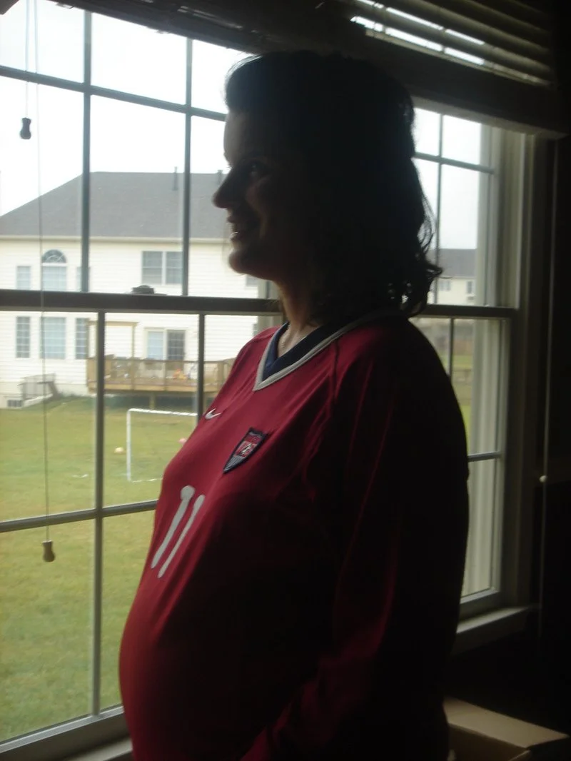 And I'm betting Bobby never imagined that National Team jerseys he left behind would become cutting edge maternity wear! (Note to viewers at home: Bobby was number 11 on the U-17 National Team, back when he was Michael's age; now he's number 15.) And yes, he's starting!!!