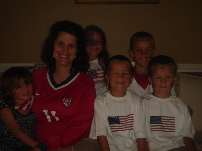 /The dream begins. Can you tell we're ready? Thanks to Grandma for the box of flag shirts that arrived just in time for the first kick!